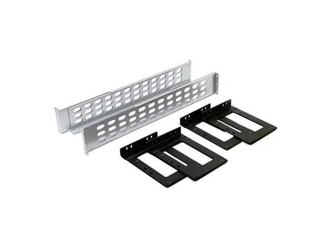O kit conta com trilhos metálicos perfurados, ideais para fixação e ventilação dos equipamentos, além de suportes que garantem o alinhamento correto no rack. Seu acabamento reforça a durabilidade e resistência para uso contínuo em ambientes de TI.
