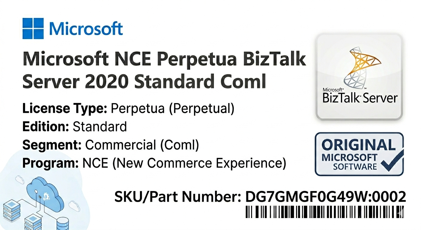 Esta licença Microsoft BizTalk Server 2020 Standard permite integração e orquestração de processos essenciais para empresas, com licença perpétua para uso comercial.