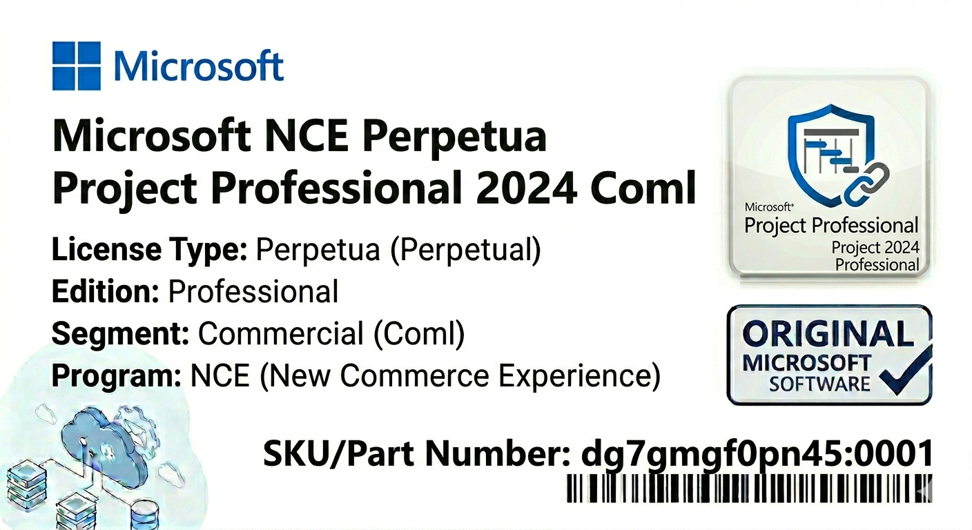 Licença original da Microsoft para o software Project Professional 2024, versão perpétua que garante uso contínuo sem renovação.