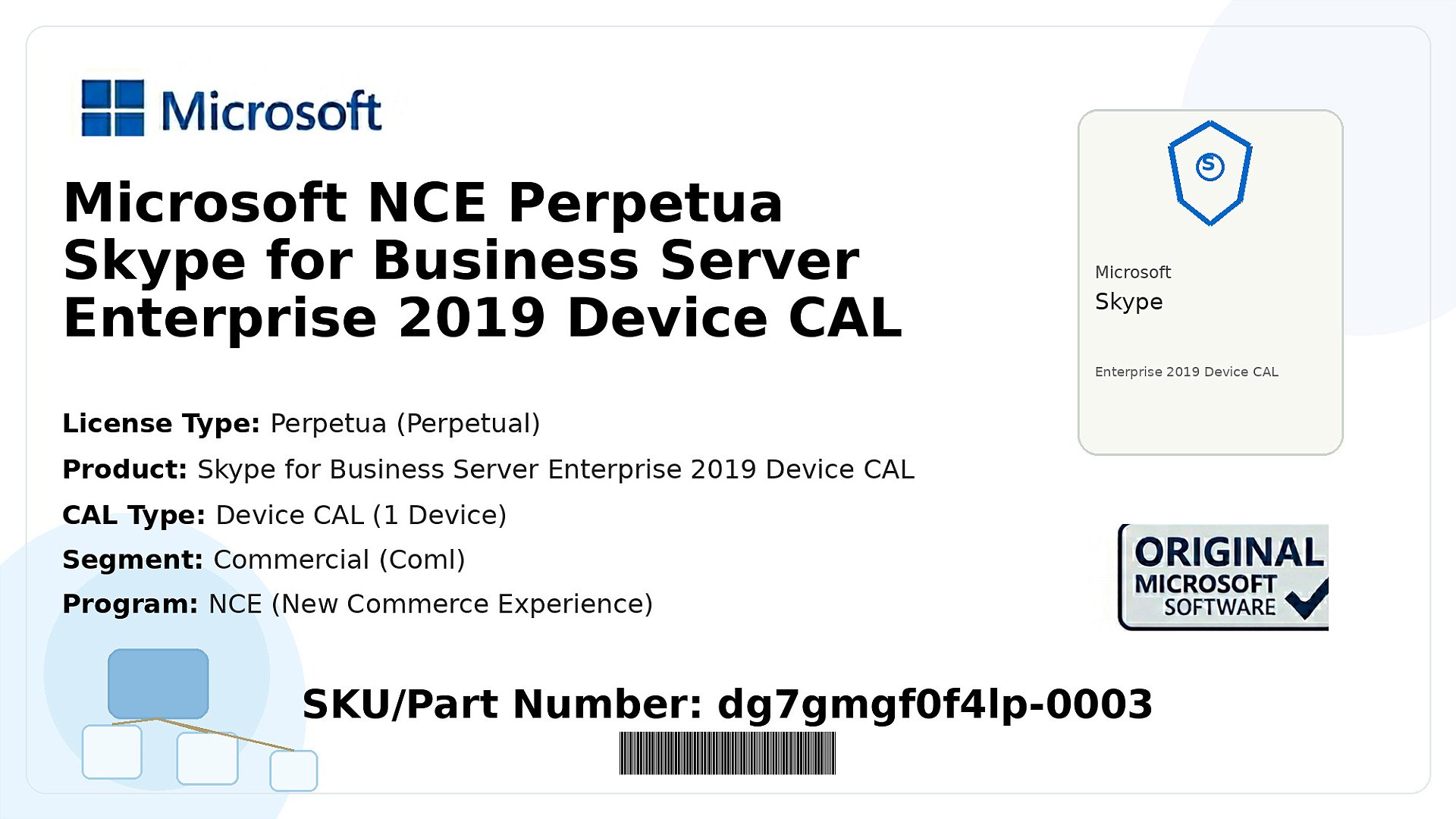 A licença Microsoft NCE Perpetua para Skype for Business Server Enterprise 2019 é ideal para dispositivos que precisam de acesso ao sistema de comunicação corporativa. Esta licença Device CAL oferece permissão permanente para uso em um dispositivo, garantindo acesso contínuo ao servidor Microsoft Skype for Business.