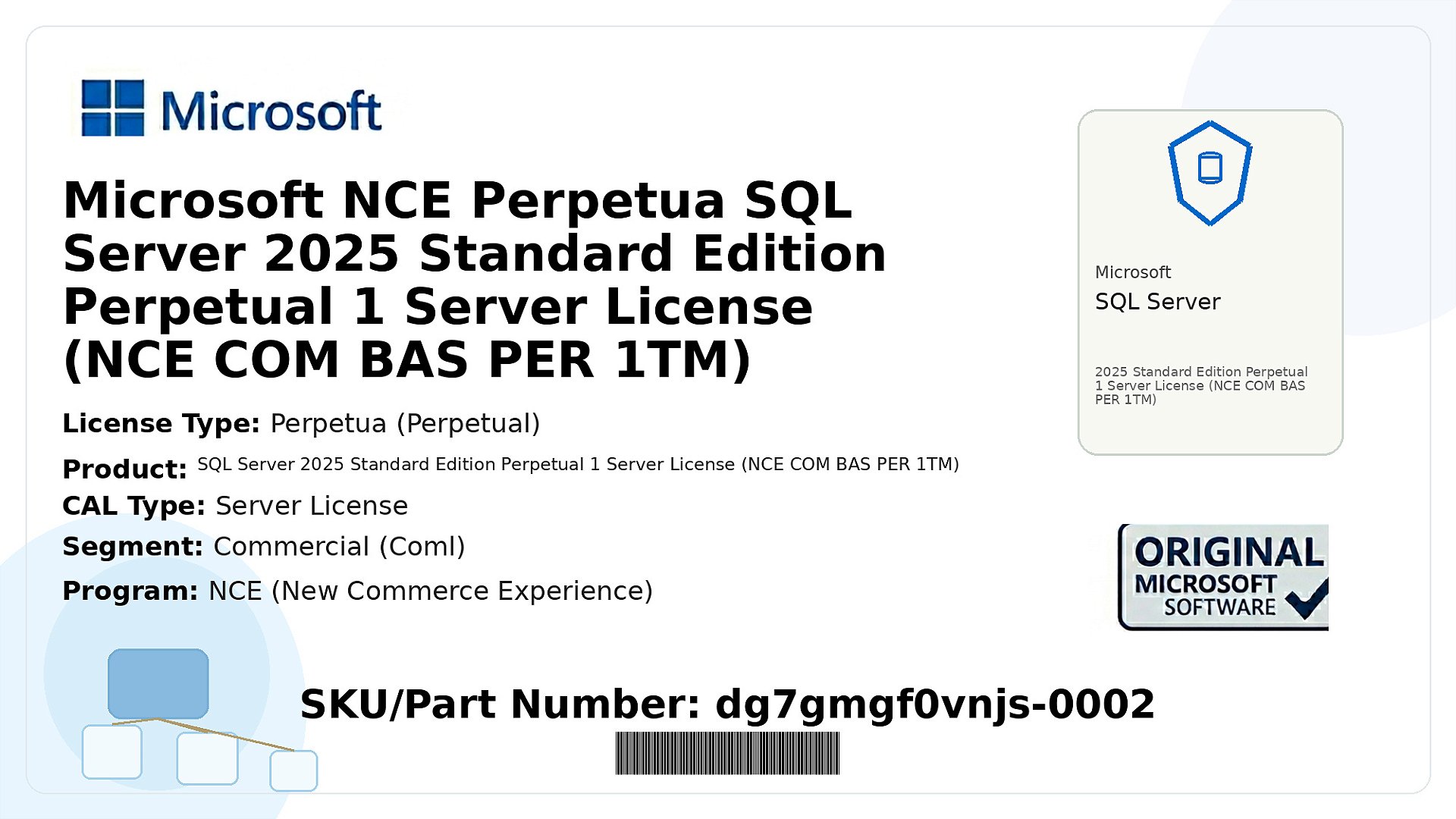 Licença perpétua para uso comercial do SQL Server Standard 2025, garantindo gestão de dados eficiente e segura.