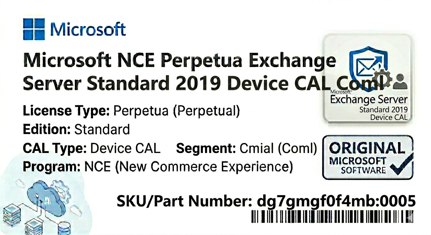 Licença digital para Device CAL do Microsoft Exchange Server Standard 2019 conforme código SKU dg7gmgf0f4mb:0005.