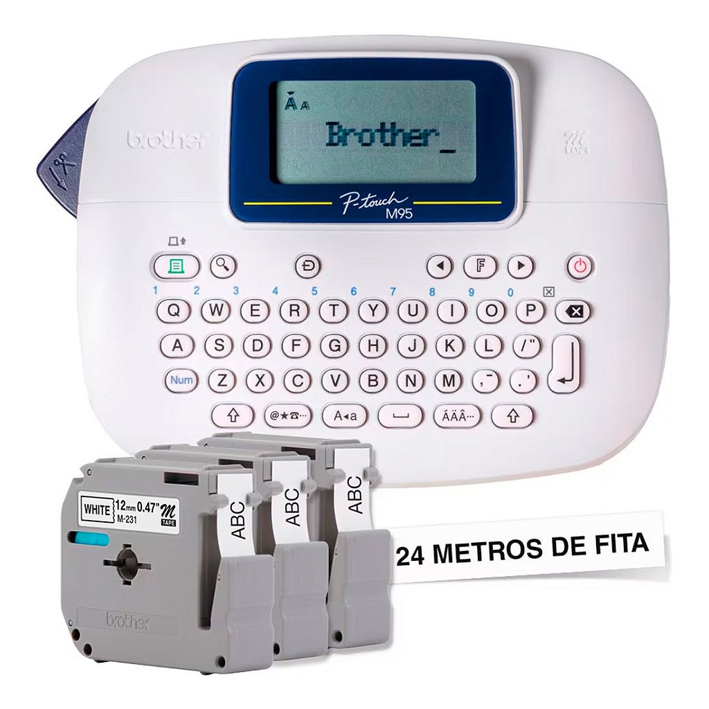 Rotulador Eletrônico Brother com 3 fitas Branco - PTM95WTBP